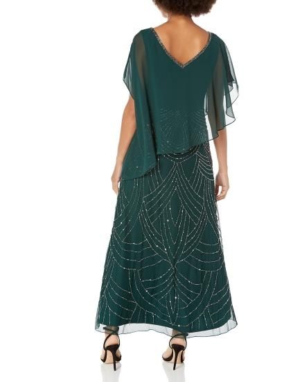 J Kara Women's Plus Size Caplet V-Neck Mock 2 Piece Beaded Dress Hunter Multi 20