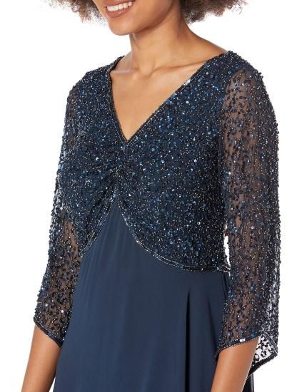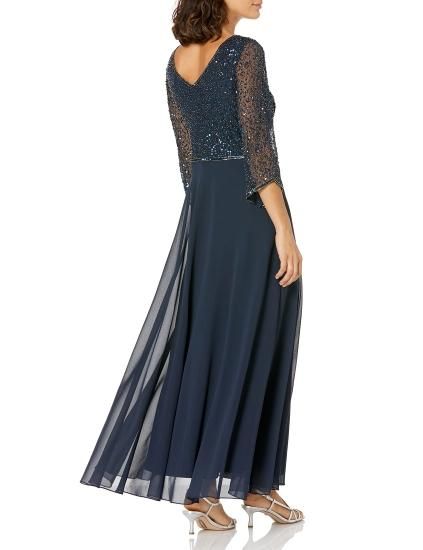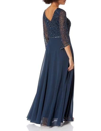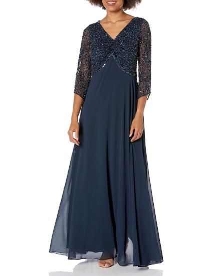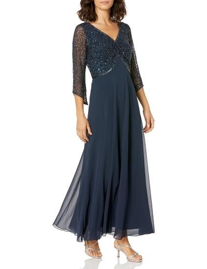 J Kara レディース プチ 3/4スリーブ Vネック ビーズ付きトップ ロングガウン US サイズ 12 Petite カラー ブルー