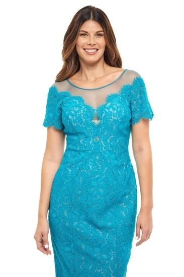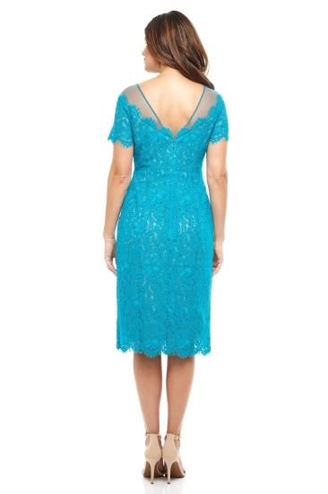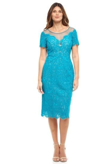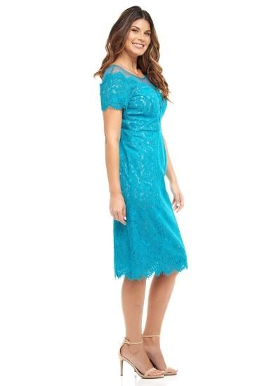 Rene Ruiz Collection Illusion Neck Lace Fitted Cocktail Dress Teal