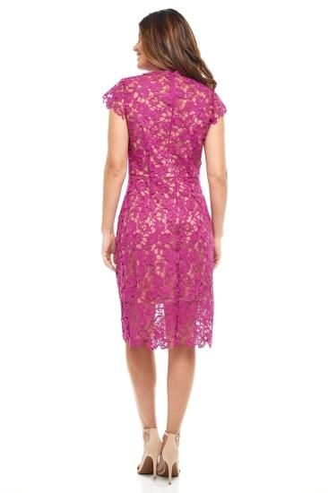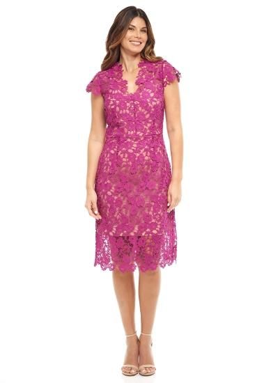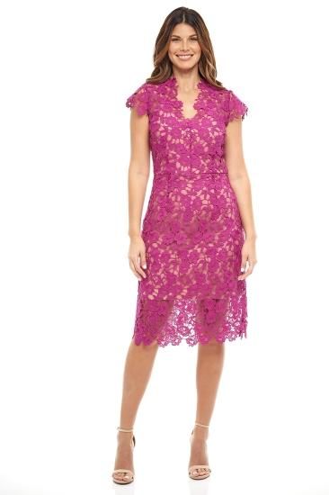 Rene Ruiz Collection V-Neck Guipure Lace Cocktail Dress Dark Fuschia