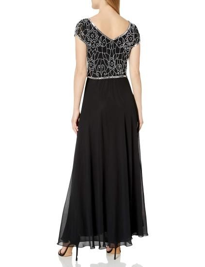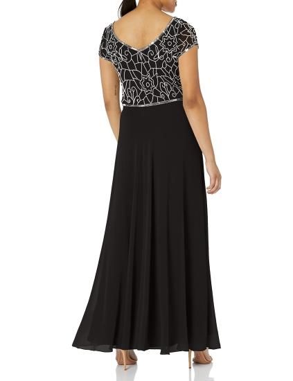J Kara Women's Plus Size Cap V-Neck Beaded Dress Black 20W
