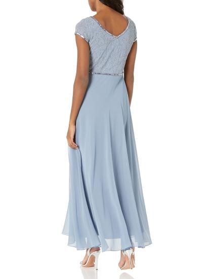 J Kara womens Petite Cap Sleeve V-neck Beaded Top Gown Special Occasion Dress Du