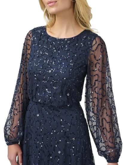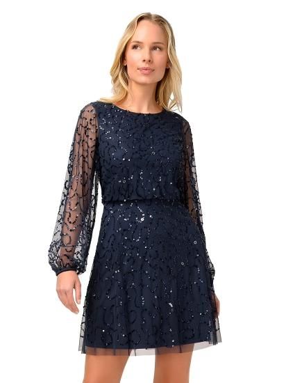 Adrianna Papell Women's Beaded Short Dress with Sleeve Navy 12