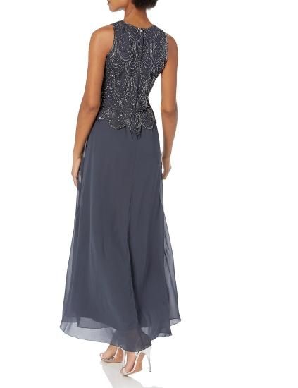 J Kara Women's Sleeveless Scallop Design Beaded Gown with Scarf Grey/Gun/Mercury