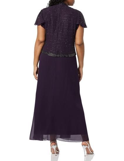 J Kara womens Plus Size Faux Wrap Long W/Flutter Sleeve Special Occasion Dress P