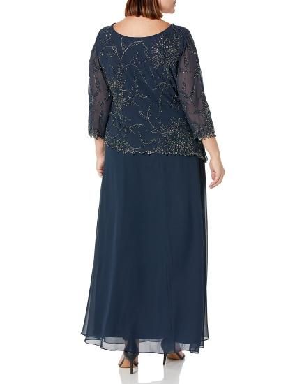 J Kara womens 3/4 Sleeve Beaded Mock 2 Piece Mother Of The Bride Dress Navy Mult