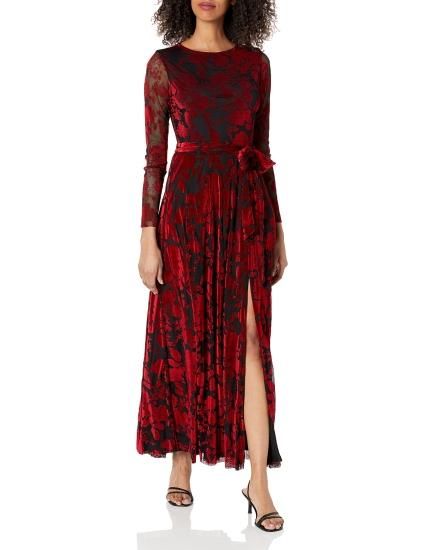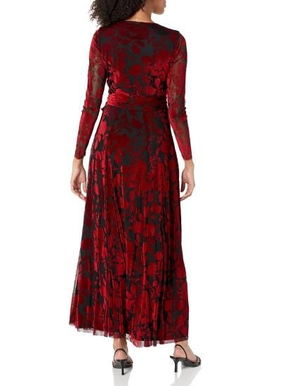 Anne Klein Women's Long Sleeve Maxi Dress Titian Red/Anne Black XL