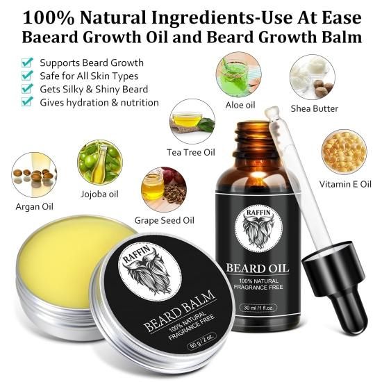 Beard Kit for Men - Beard Gift Sets with Beard Oil Beard Balm Beard Brush Beard