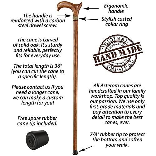 Handmade Ergonomic Walking Cane for Men and Women - Stylish Derby Oak Wood Cane