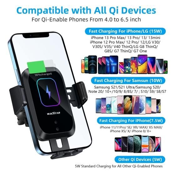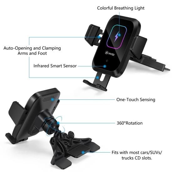Enomol Wireless Car Charger CD Slot Phone Mount Auto-Clamping 15W Qi Fast Chargi