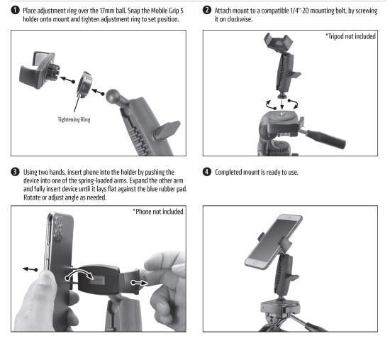 ARKON Mounts MG5RM1420 Mobile Grip 5 Tripod Phone Mount for iPhone 12 11 XS XR G