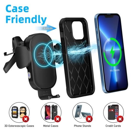Wireless Car Charger - Lekente 15W Qi Fast Charging Car Phone Mount Auto-Clampi
