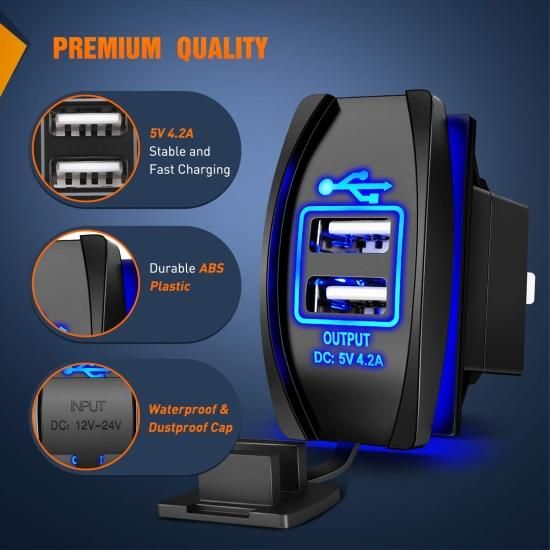Nilight Dual USB Charger 4.2A Rocker Switch Style USB Charger 12V/24V Fast Charg