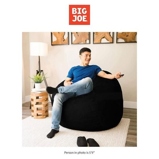 Big Joe Fuf Large Foam Beanbag Chair Black Plush