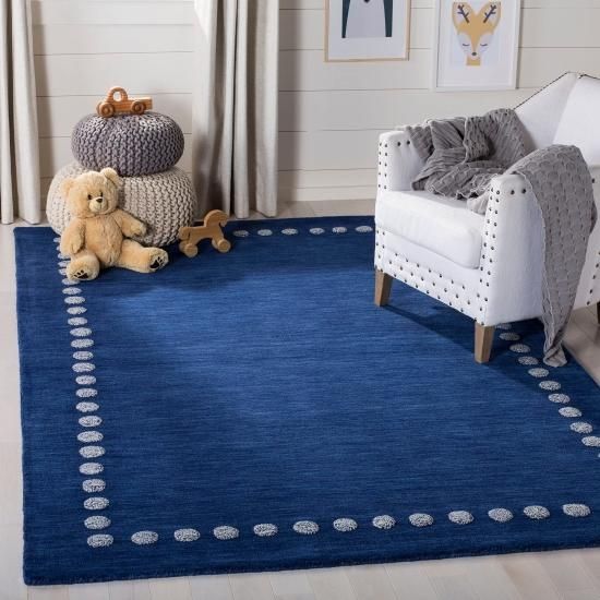 SAFAVIEH Kids Collection 8' x 10' Grey SFK802F Handmade Polka Dot Border Wool Ar