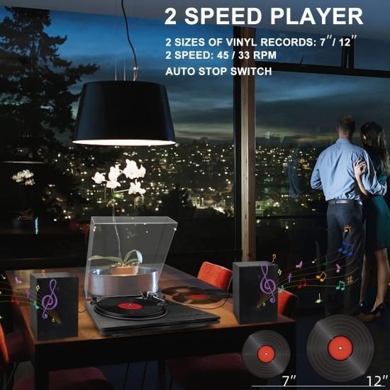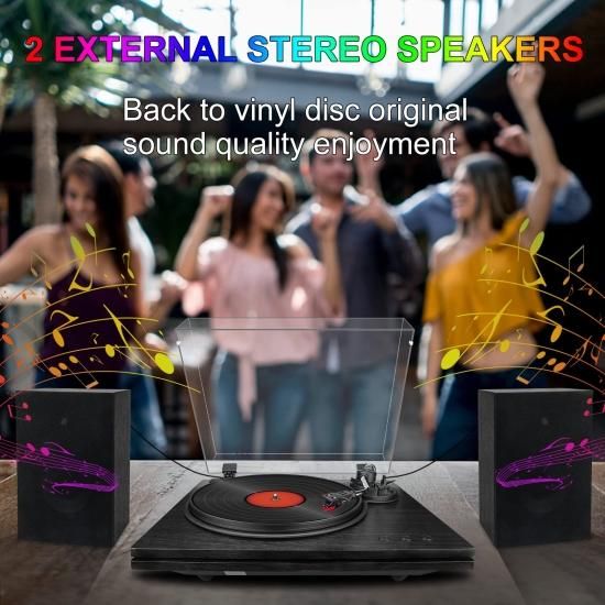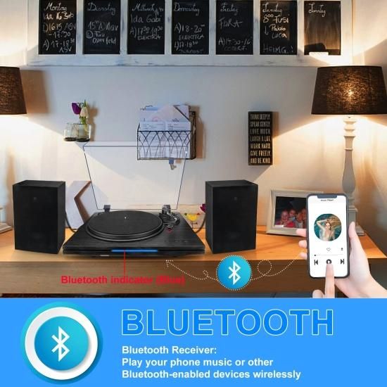 HONGUT Record Player Bluetooth Turntable for Vinyl Records with Stereo Bookshelf