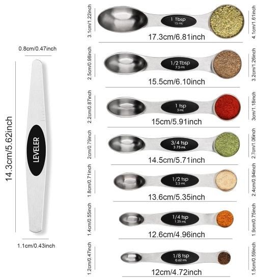 Magnetic Measuring Spoons Set Stainless Steel with Leveler Stackable Metal Table