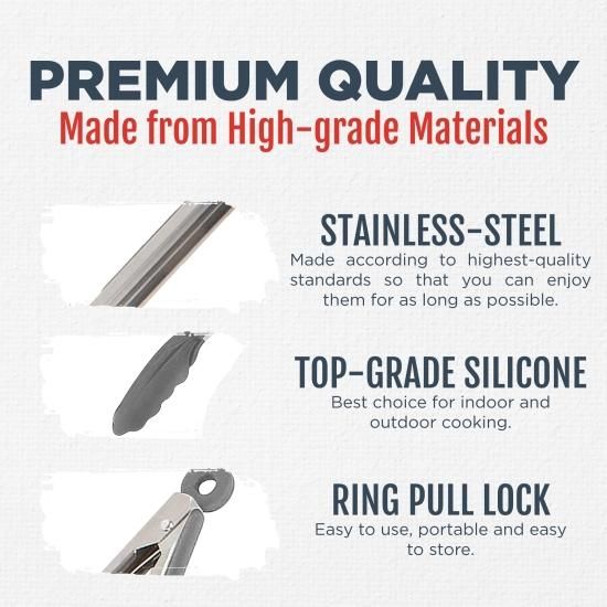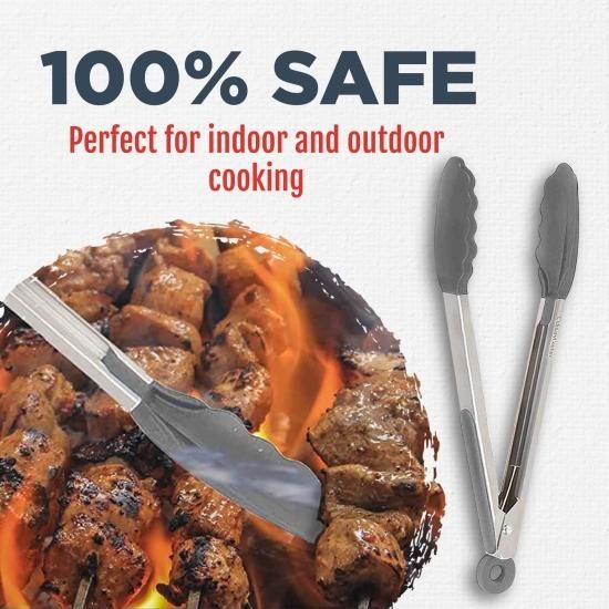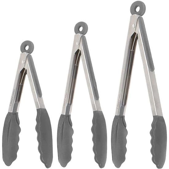 Gray - Grey Silicone Cooking Serving Tongs - Set Of 3 Kitchen Locking Tongs-723c