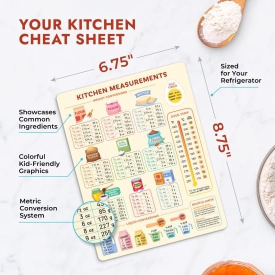 Kitchen Conversion Chart Magnet for Easier Cooking & Baking - Accurate Baking Co
