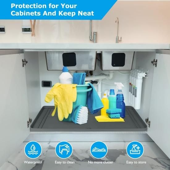 Under Sink Mats for Kitchen Waterproof Cut to Fit Under Sink Drip Tray for Kitch
