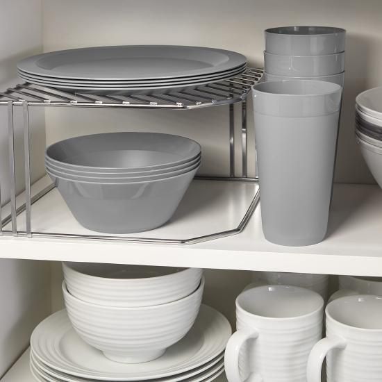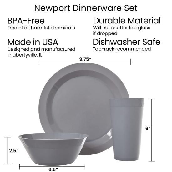 US Acrylic Newport Plastic Plate Bowl and Tumbler Dinnerware Set for 4 in Grey S
