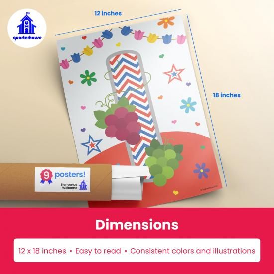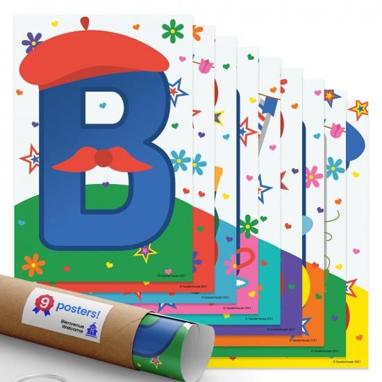 Quarterhouse Bienvenue ウェルカムポスターセット フランス - ESL 教室 学習教材 K-12 学生と教師用 9個セット 12x18イン