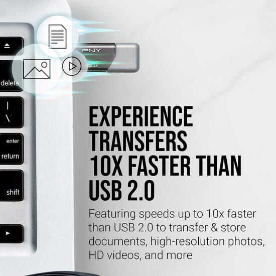 PNY 64GB Turbo Attach? 3 USB 3.0フラッシュドライブ、シルバー5個パック