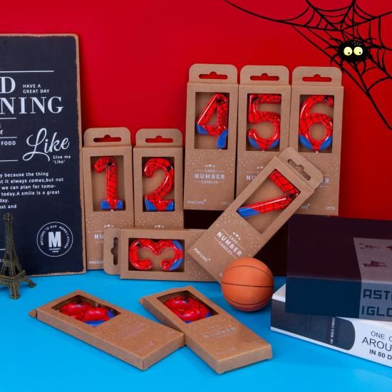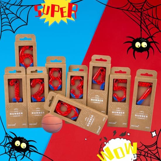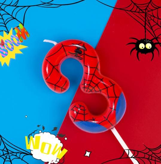 PHD CAKE 2.76インチ ナンバー3 スパイダーバースデーキャンドル、スパイダーカートゥーンテーマナンバーキャンドル、ケーキナンバーキャンドル、パーティ