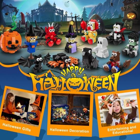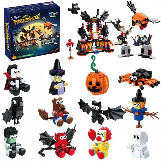 ハロウィンギフト - 当社はお子様への素晴らしいギフトをデザインすることに尽力しています。このハロウィンブロックセットには、魔女、カラス、悪魔、狼男、ロボット、かかし、ピエロ、幽霊、クモ、吸血鬼、コウモリ、カボチャの12種類のハロウィーン要素が含まれています。 そして、ハロウィンのお城に再編成することができます。