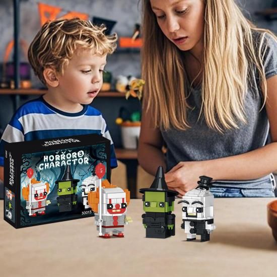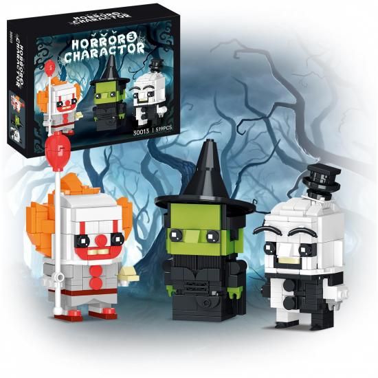 ハロウィン ホラーヘッド フィギュア 組み立てセット レゴ対応 大人用 ピエロ 魔女 ホラーデコレーション ファン用 子供用 519ピース