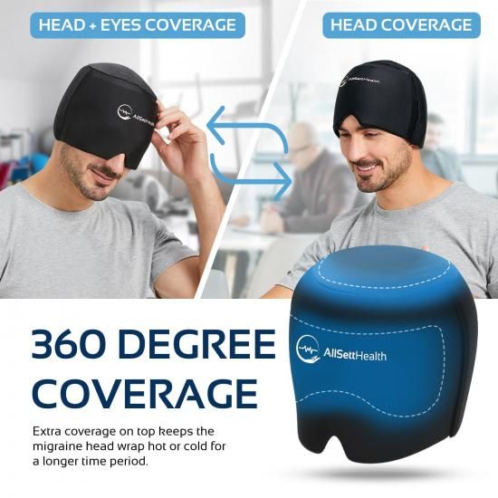フリーサイズ - ワンピースラップデザインが心地よい圧迫感を与え、激しい頭痛や偏頭痛の発作を緩和します。